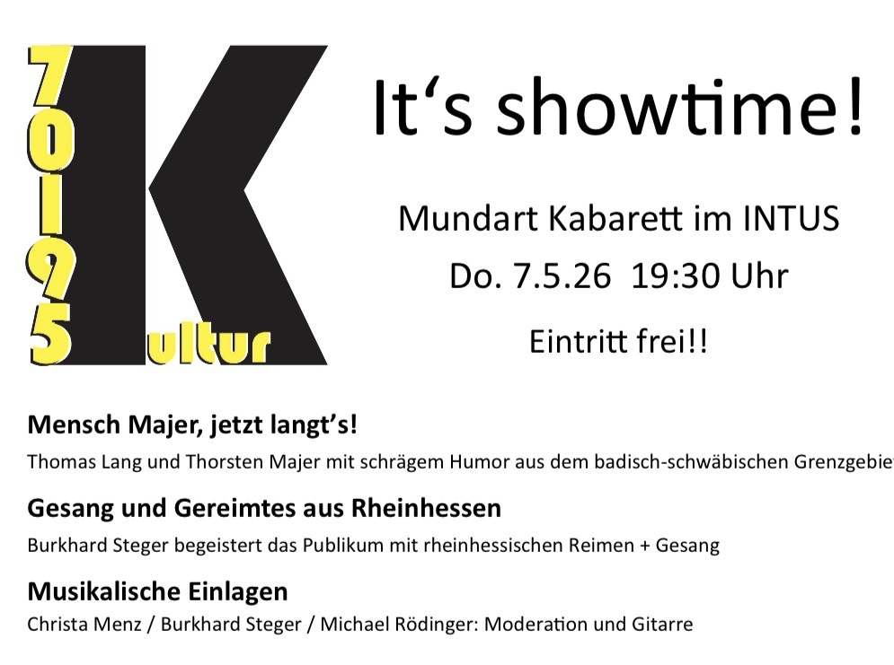 Gesang und Gereimtes aus Rheinhessen Burkhard Steger, früher als Redner bei den Mombacher Boh- nebeitel (Mainzer Fastnacht) bekannt, begeistert das Publikum mit rheinhessischen Reimen + Gesang