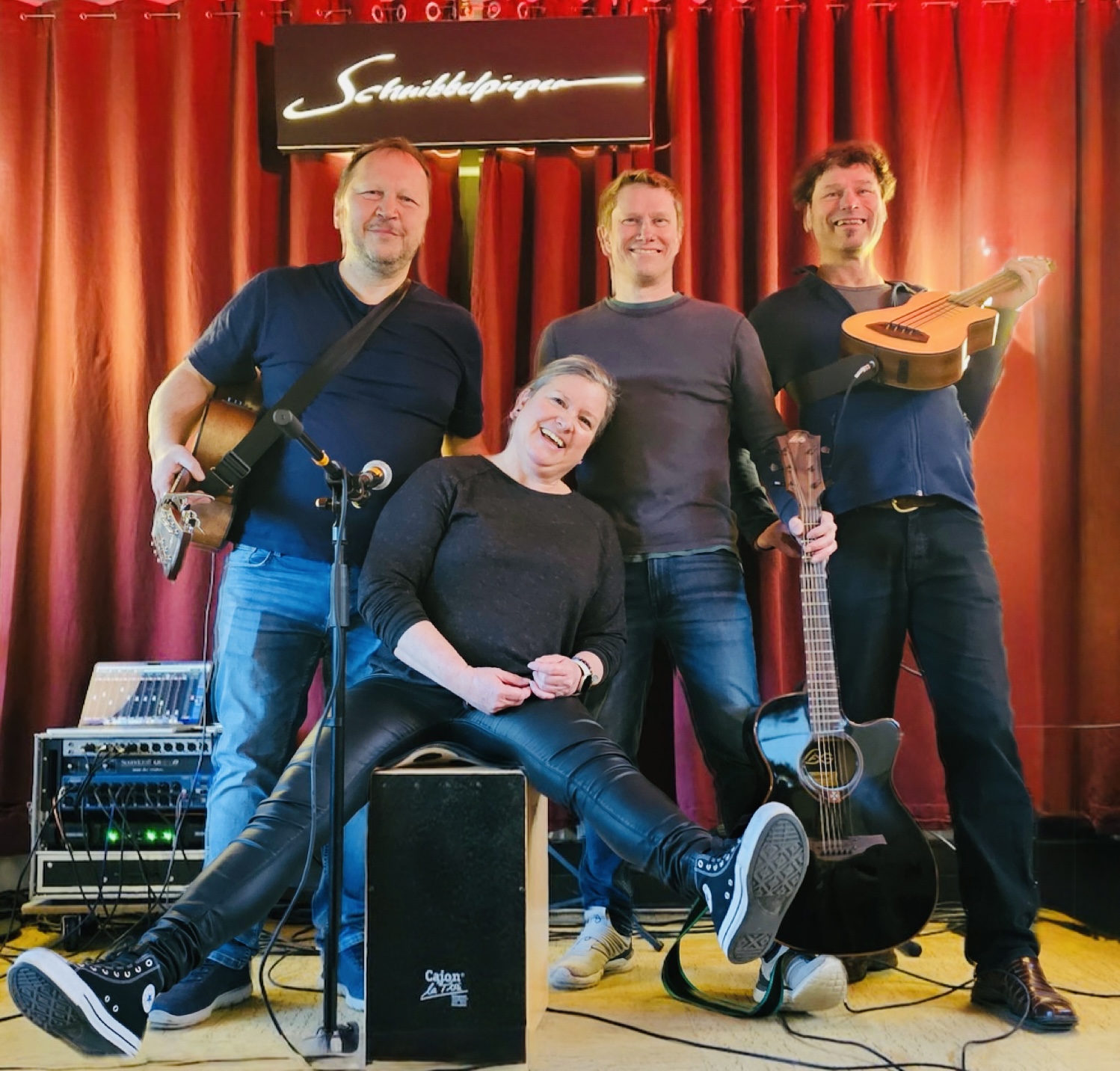 Schnibbelpieper, die Akustik-Combo aus Stuttgart Botnang und Beutelsbach beschwören  mit einer raffinierten Mischung  Englisch- und Deutschsprachiger Songs mehrstimmig und gekonnt den Spirit dieser und der letzten 5 Dekaden.